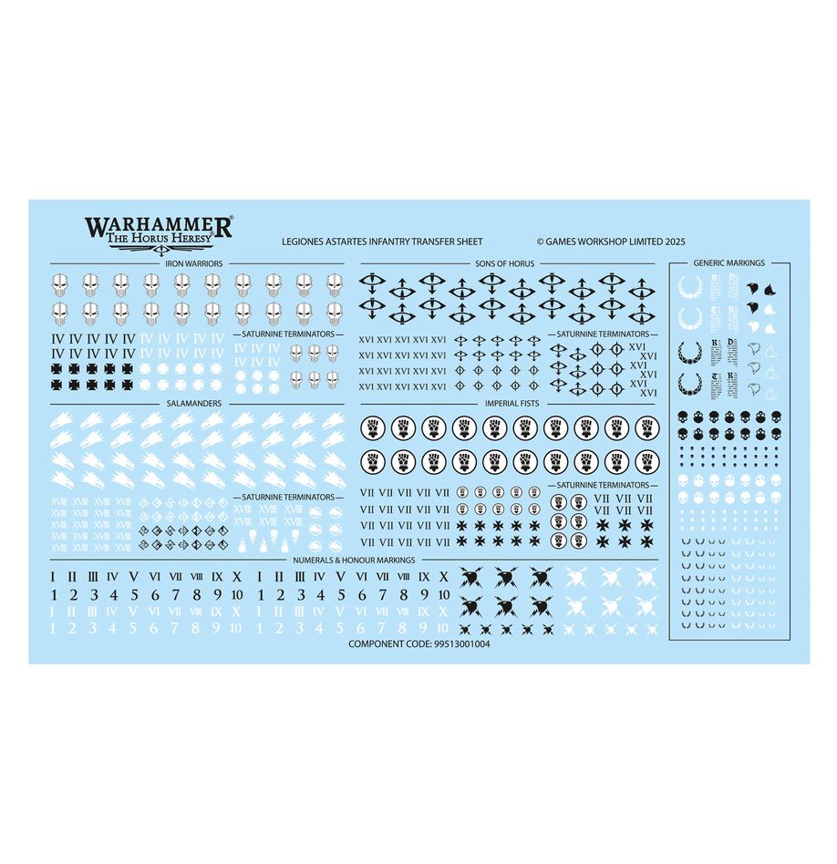 The kit includes parts to build up to two Sergeants, who can each be armed with a disintegrator pistol or volkite serpenta, a power maul, and a melta bomb. Every member of the squad can swap their bolt pistol for a combat shield to soak up greater amounts of damage as they leap across the battlefield, and two Legionaries can each be armed with an optional heavy chain axe to give them more hitting power. There are 16 different heads in eight designs, and a selection of grenades, pouches, and holsters to further customise your miniatures.