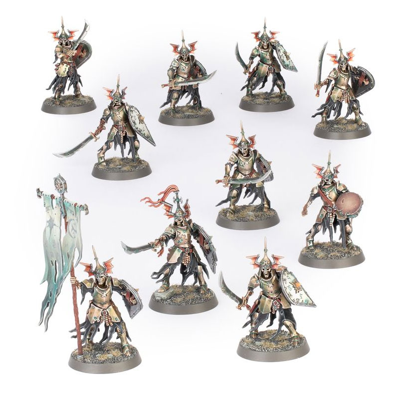 This multipart plastic kit builds 10 Barrow Guard, elite Deathrattle infantry for your Soulblight Gravelords armies in games of Warhammer Age of Sigmar. They are ideal for claiming objectives or acting as bodyguards for your infantry heroes.